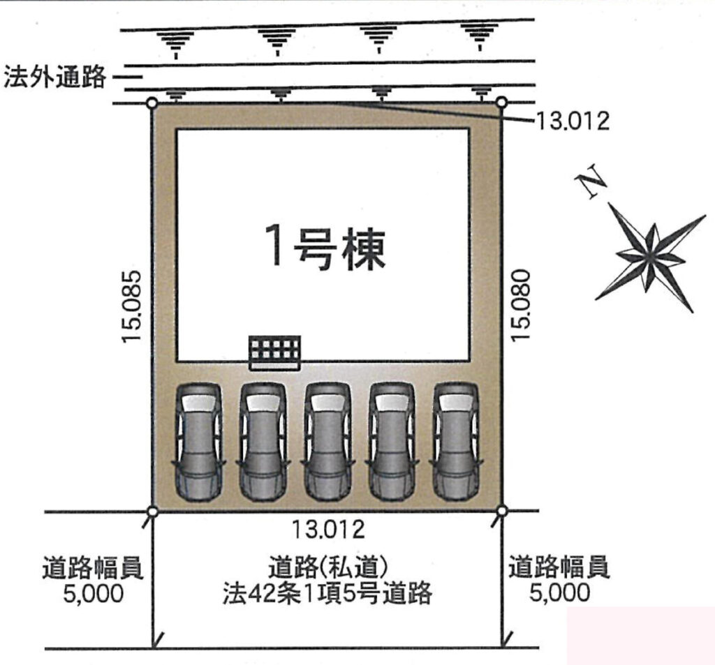 | 接道状況 | 南西5.0m 私道 接面13.0m | ||||