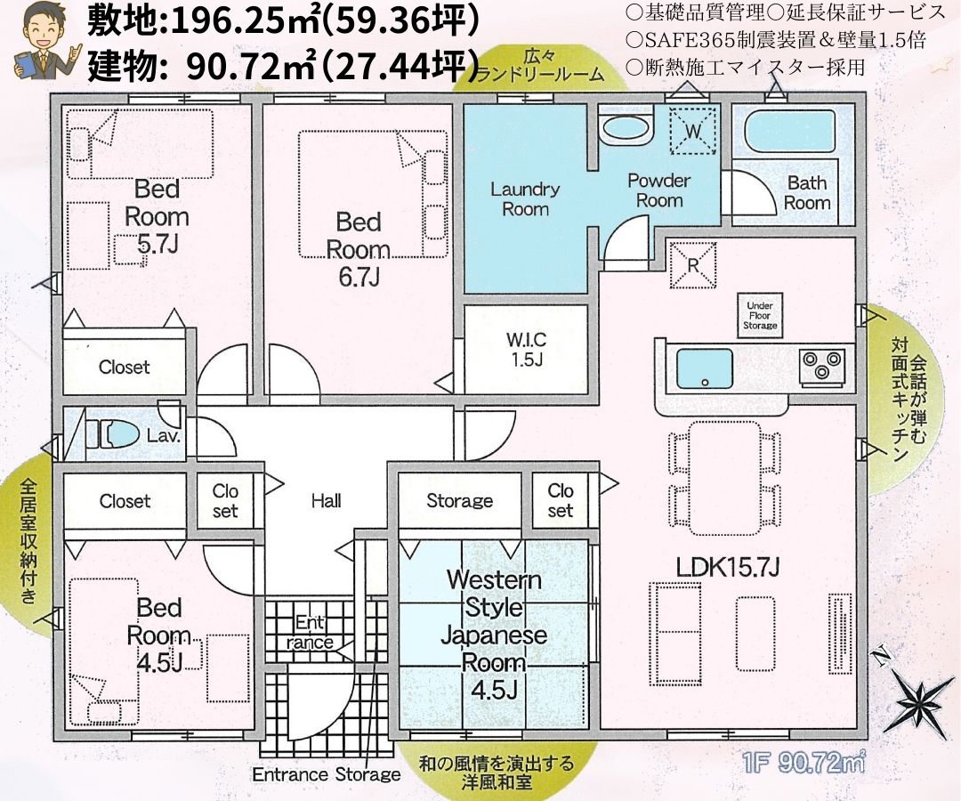 | 建物面積 | 90.72㎡ | 土地面積 | 公簿 196.25㎡ (59.36坪) |
