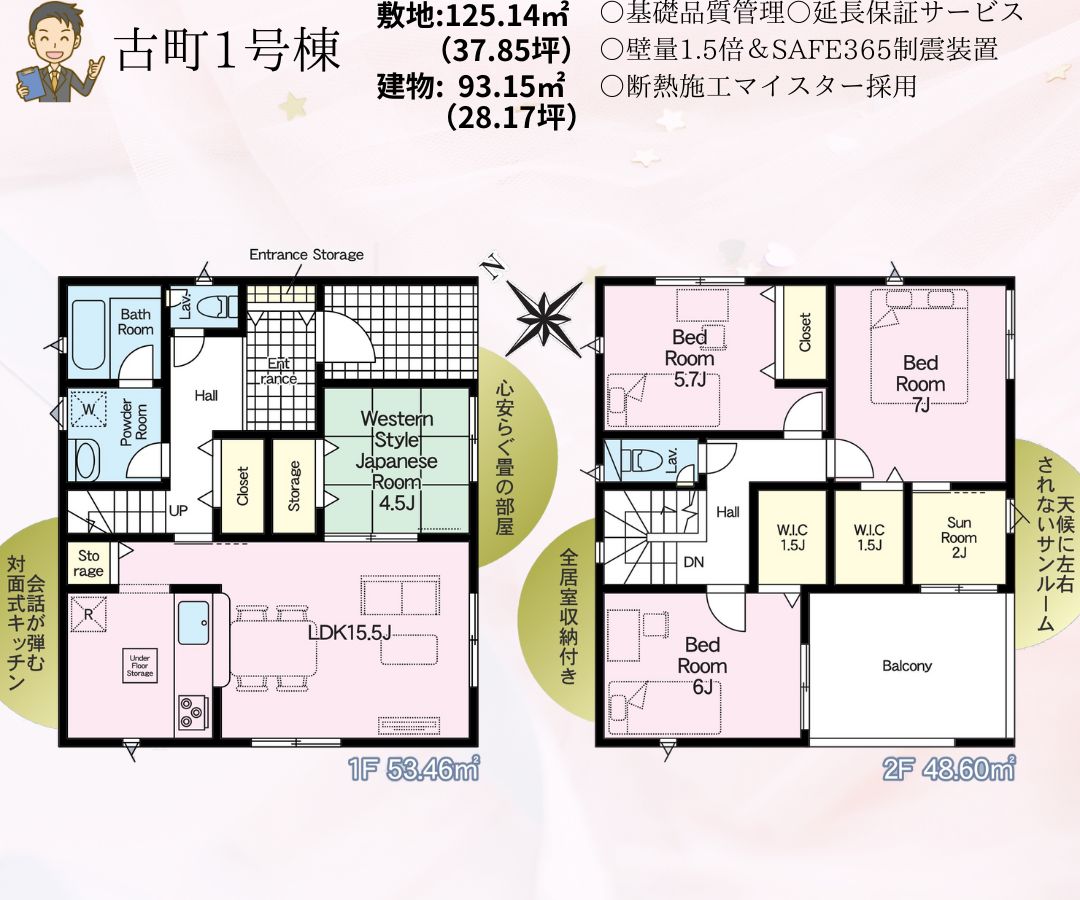 | 建物面積 | 93.15㎡ | 土地面積 | 公簿 125.14㎡ (37.85坪) |