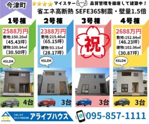 | 備考 | ■校区:西大村小学校・西大村中学校 ■建蔽率:大村市建築基準法施行細則第6条により60%⇒70% ■TVアンテナ・網戸・シャッター・面格子・フェンス・カーテンレール・カーテン別途見積になります。弊社キャンペーンをご活用下さい。 |
