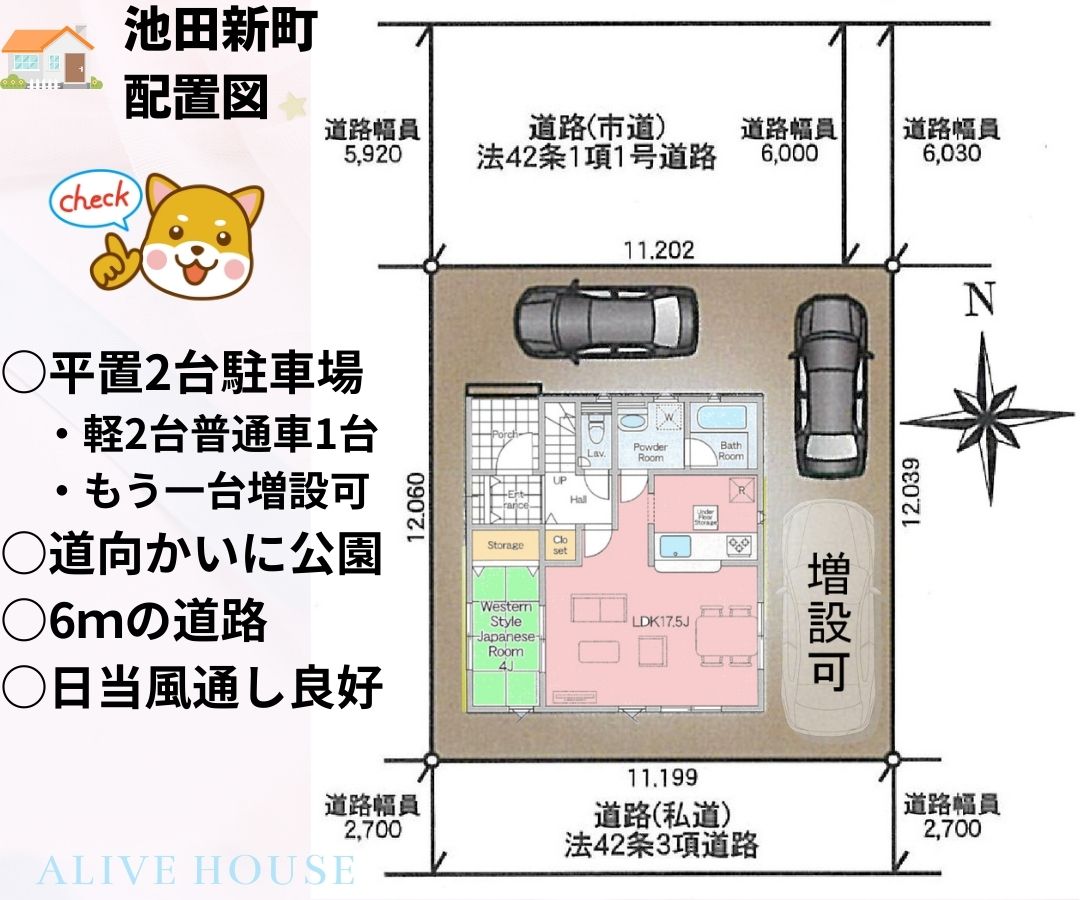 | 設備 | オートバス バス1坪以上 追焚機能 浴室暖房 浴室乾燥機 浴室に窓あり トイレ2ヶ所 温水洗浄便座 シャワー付洗面化粧台 3口以上コンロ カウンターキッチン システムキッチン グリル 浄水器 全居室収納 クローゼット 床下収納 人感センサー付照明 ダウンライト フットライト 省エネ給湯器 都市ガス 複層ガラス Low-Eガラス 電気 上水道 下水道 側溝 EV車充電設備 ダブルロックドア モニタ付インターホン ディンプルキー 防犯カメラ 火災警報器(報知機) 庭 駐車場3台分以上 | ||||