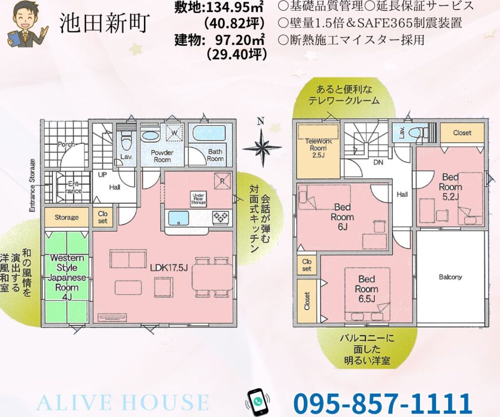 | 建物面積 | 97.20㎡ | 土地面積 | 公簿 134.95㎡ (40.82坪) |