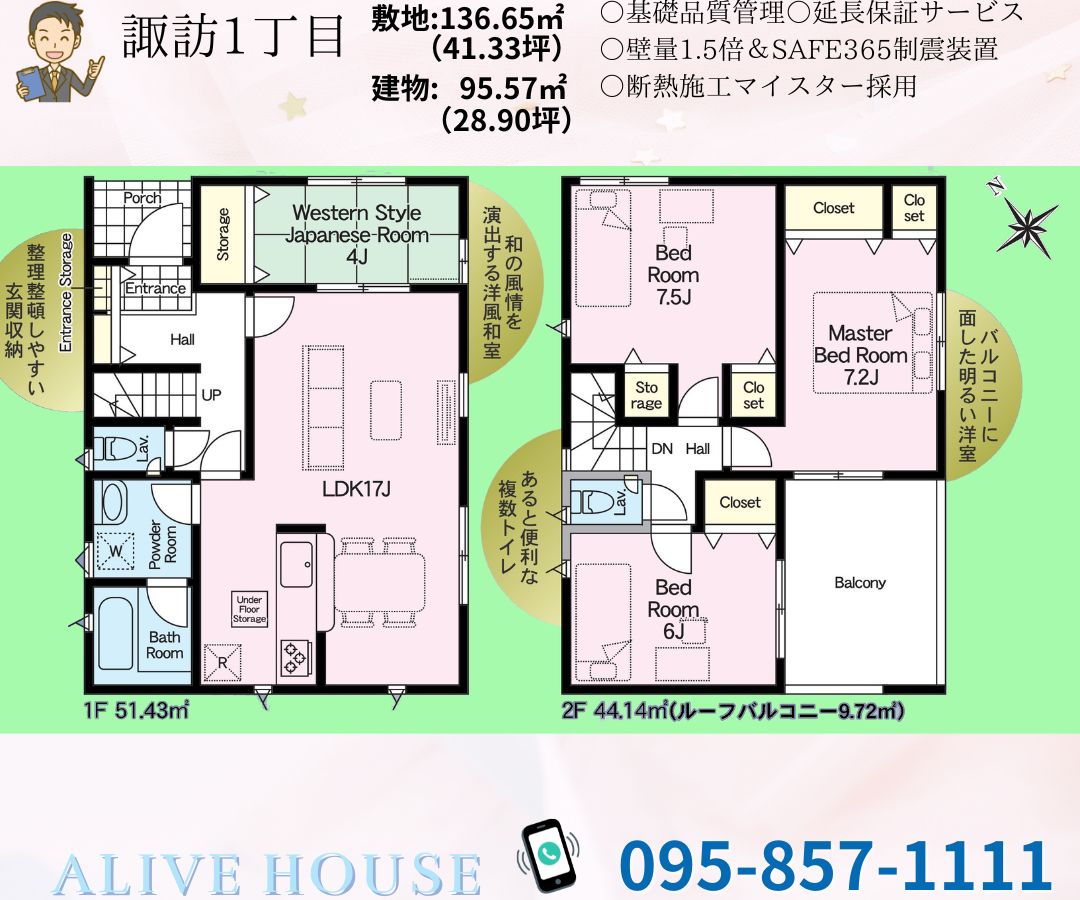 | 建物面積 | 95.57㎡ | 土地面積 | 公簿 136.65㎡ (41.33坪) |